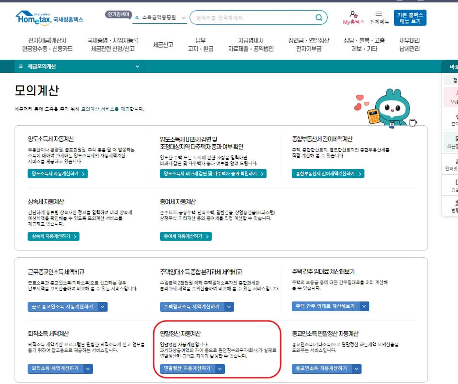 연말정산은 국세청 홈택스에서 모의 계산을 해 볼 수 있습니다.