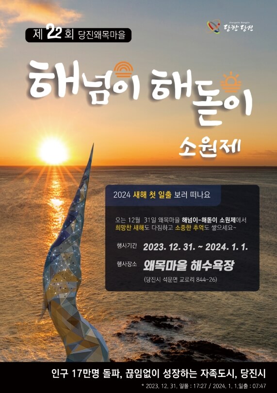 | 충남 서해안 해넘이 해맞이 여러 행사 모음 (0) | 2023.12.28 |